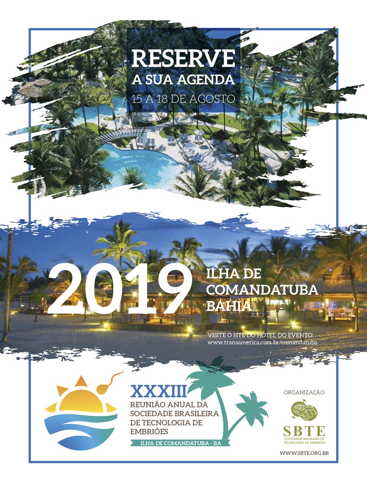 Comandatuba é uma ilha próxima a Ilhéus, Bahia. Nela está localizado o Transamerica Resort, com uma combinação única para conciliar trabalho e lazer de maneira primorosa. Desta forma, todos poderemos desfrutar de um novo Centro de Convenções, acomodações muito agradáveis, gastronomia impecável e serviços all inclusive de alto nível! O Transamerica Comandatuba oferece ainda um cenário paradisíaco, com praia particular, coqueiros e clima agradável o ano todo!